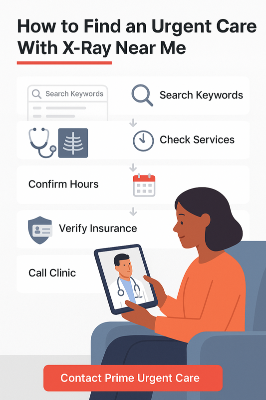 Most people searching for “urgent care near me xray” are dealing with these types of issues. At Prime Urgent Care, our urgent care services include on-site X-rays for fast diagnosis and treatment.