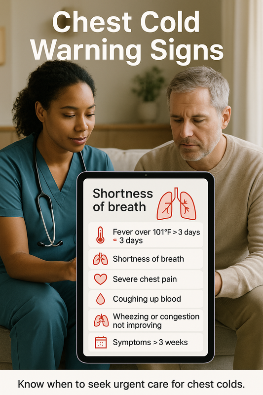 Seek care if symptoms last longer than three weeks, worsen after initial improvement, or include high fever, difficulty breathing, or severe chest pain. At Urgent Care Services, clinicians can evaluate persistent chest cold symptoms and provide appropriate treatment. Early care may help prevent complications.