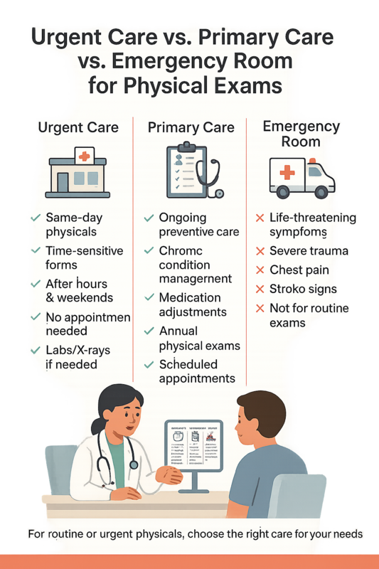 Urgent Care vs. Primary Care vs. Emergency Room for Physical Exams