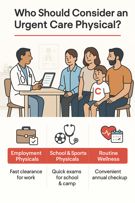 An urgent care physical is often the most convenient option for healthy individuals who need documentation or routine clearance.